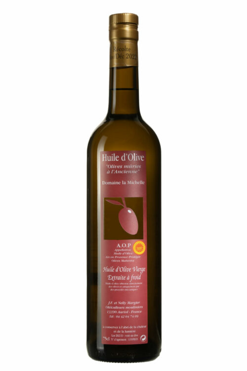Stock épuiséCette huile d’olive dite « à l’ancienne », est issue d’une fermentation contrôlée des olives après récolte. Ronde et douce, cette AOP Aix-en-Provence maturée offre par son "fruité noir", des arômes intenses de sous-bois et de cacao. Idéale pour accompagner des plats méditerranéens comme la ratatouille ou la soupe au pistou Dénomination : Huile d’olive maturée AOP Aix-en-Provence « fruité noir » Variétés d’olives : Assemblage d’au moins deux variétés d’olives Conditions particulières de conservation : à conserver à l’abri de la chaleur et de la lumière